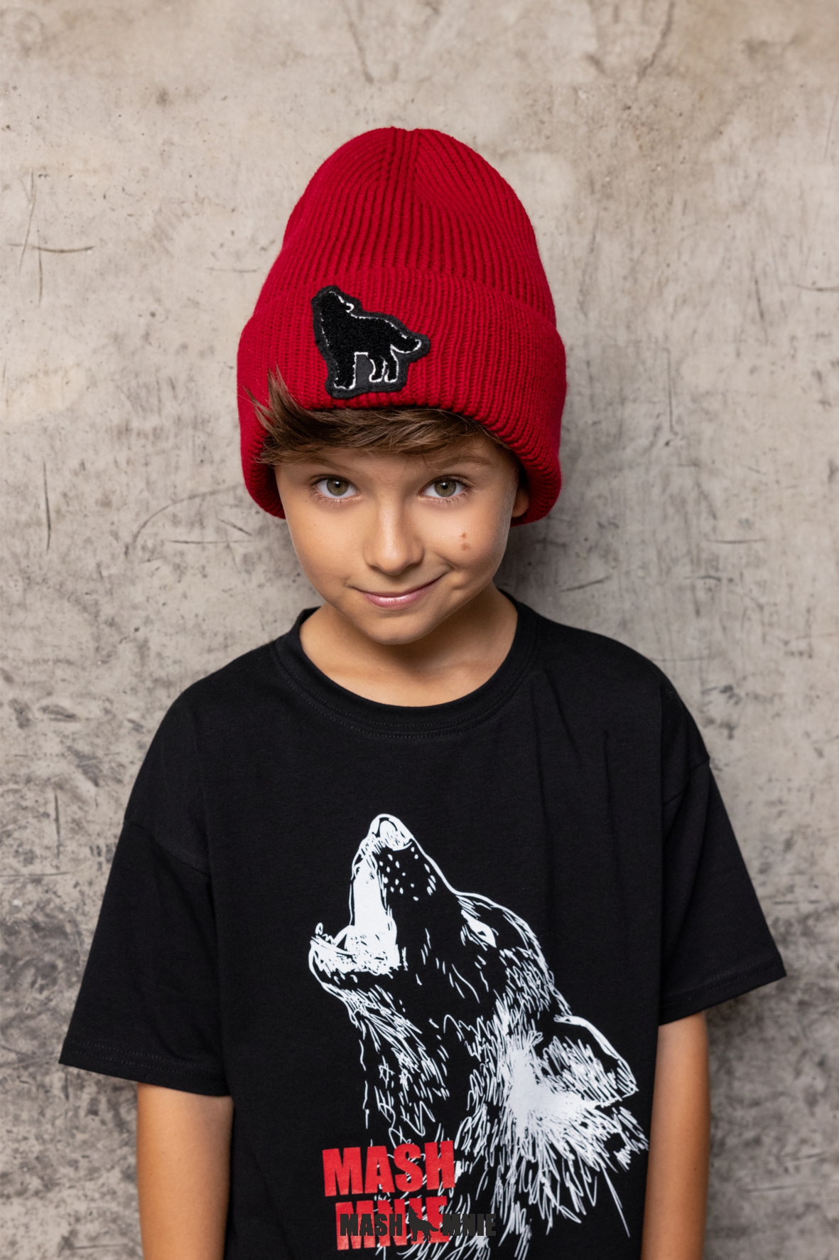 Czapka i Komin Czerwone z Wilkiem MashMnie