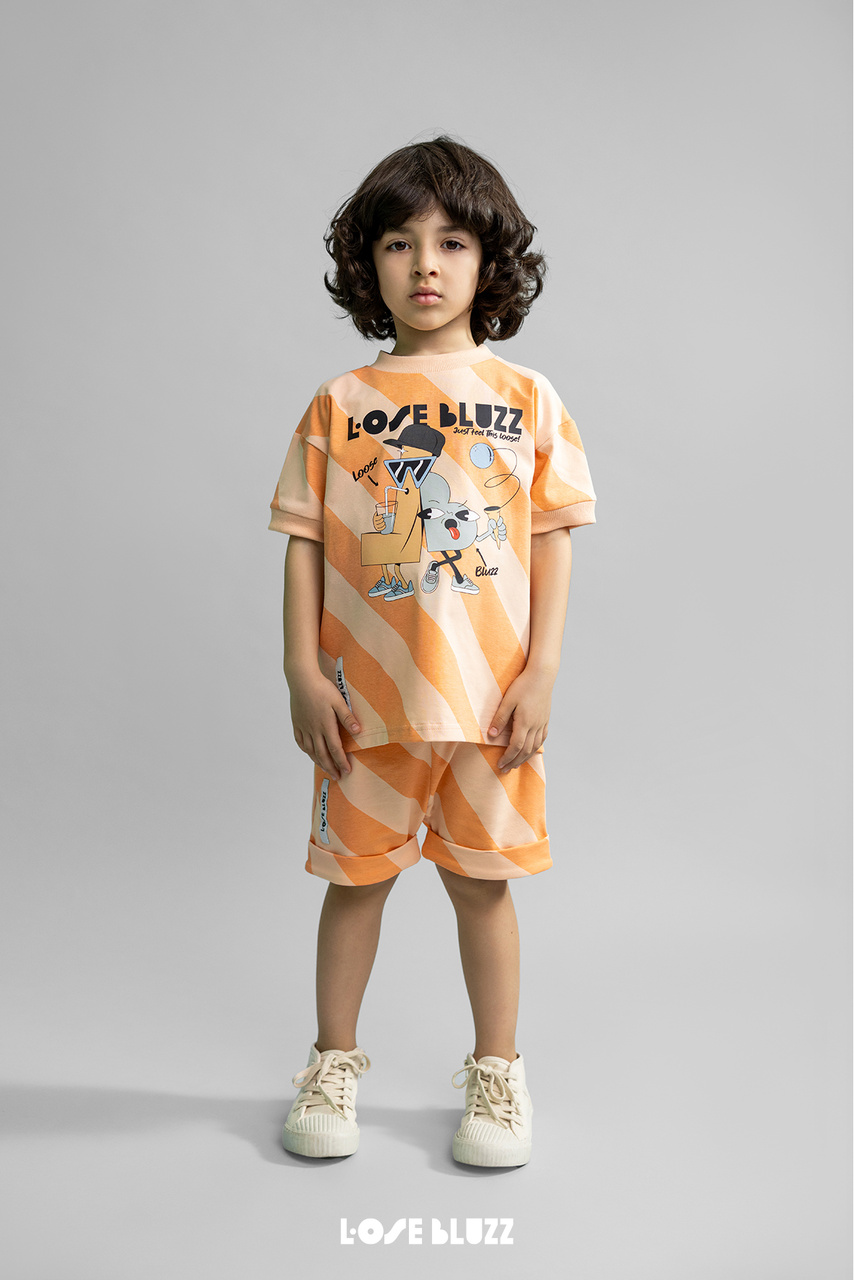 Pomarańczowe szorty chłopięce Loose Bluzz – kolekcja „Hello Summer 2025”