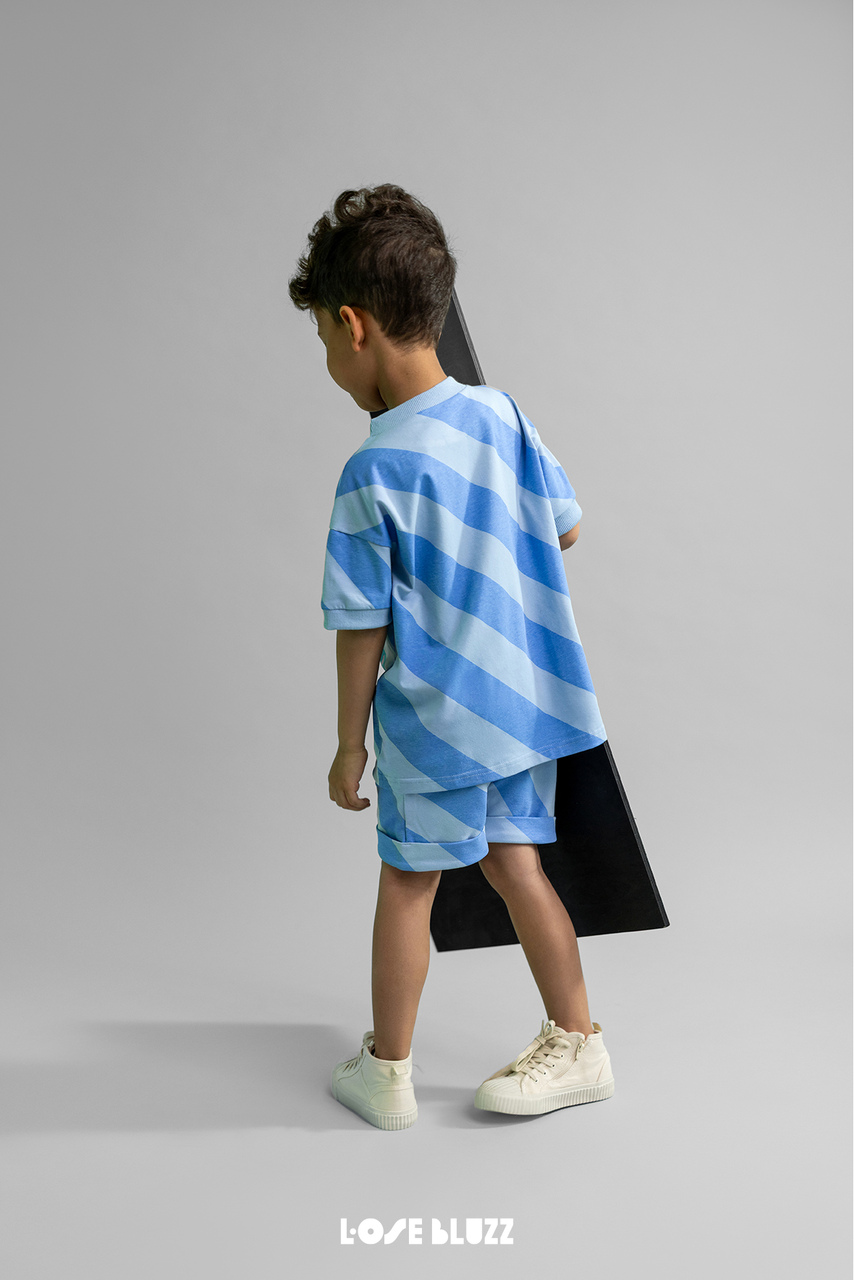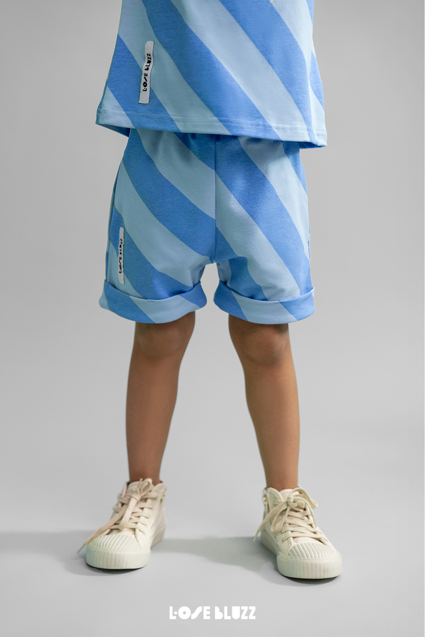Szorty Chłopięce Hello Summer Paski Niebieskie Loose Bluzz