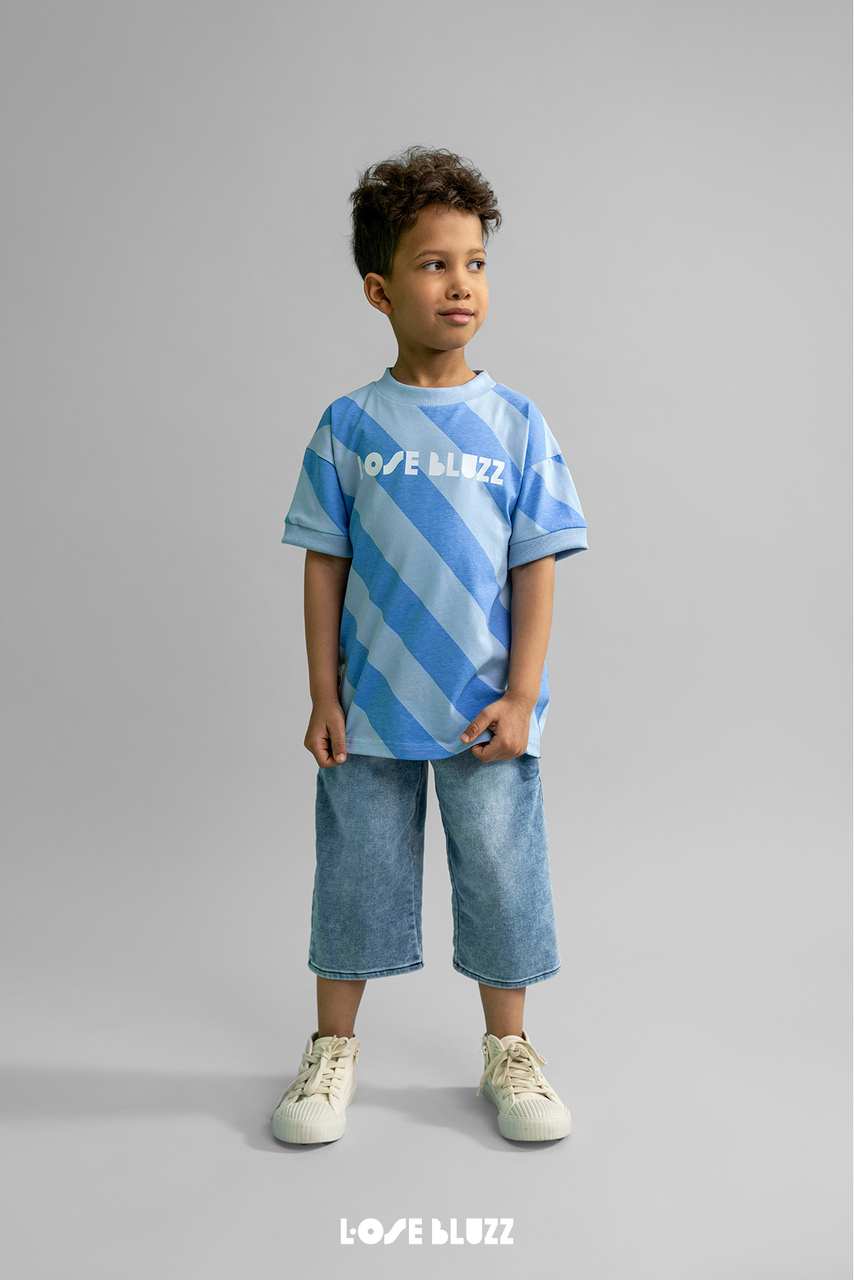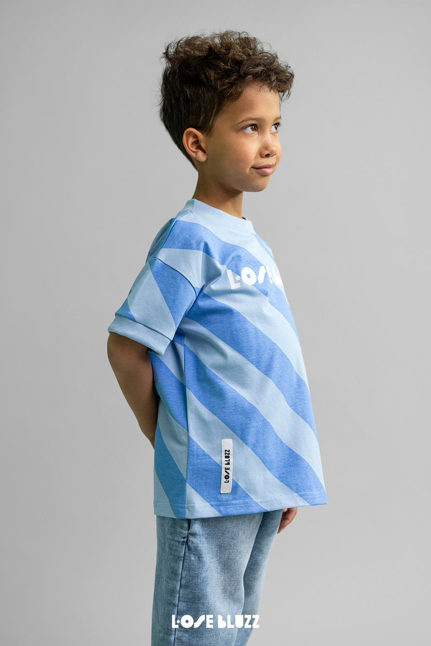 T-Shirt Chłopięcy Hello Summer w Pasy Niebieski Loose Bluzz