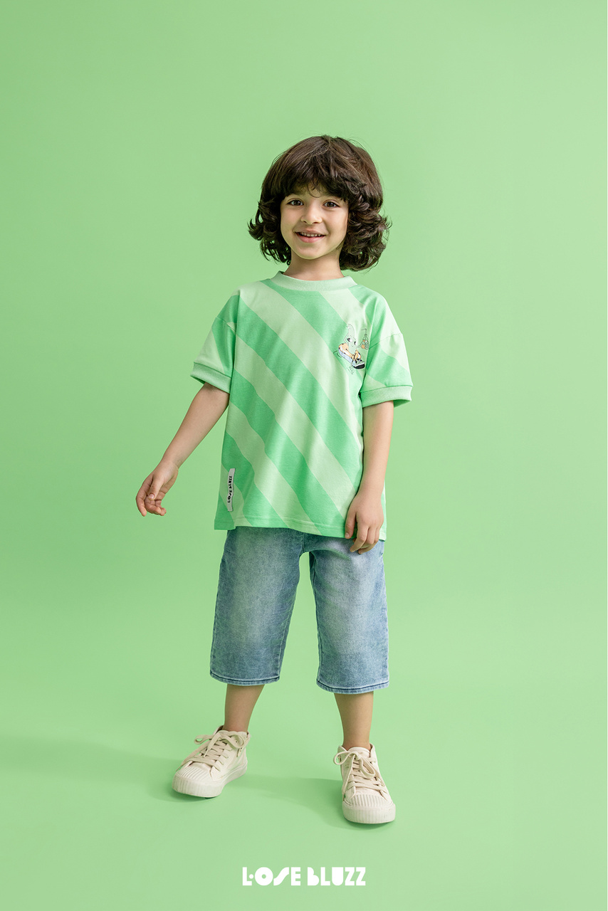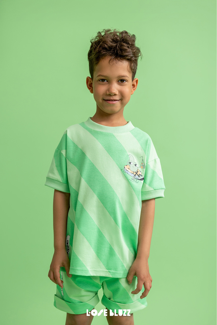 T-shirt Loose Bluzz w zielone pasy to idealny wybór dla dzieci, które chcą być sobą – wygodnie, swobodnie i z przymrużeniem oka. A dla rodziców? To gwarancja, że ich mały odkrywca będzie wyglądał modnie i czuł się świetnie, gdziekolwiek się znajdzie.