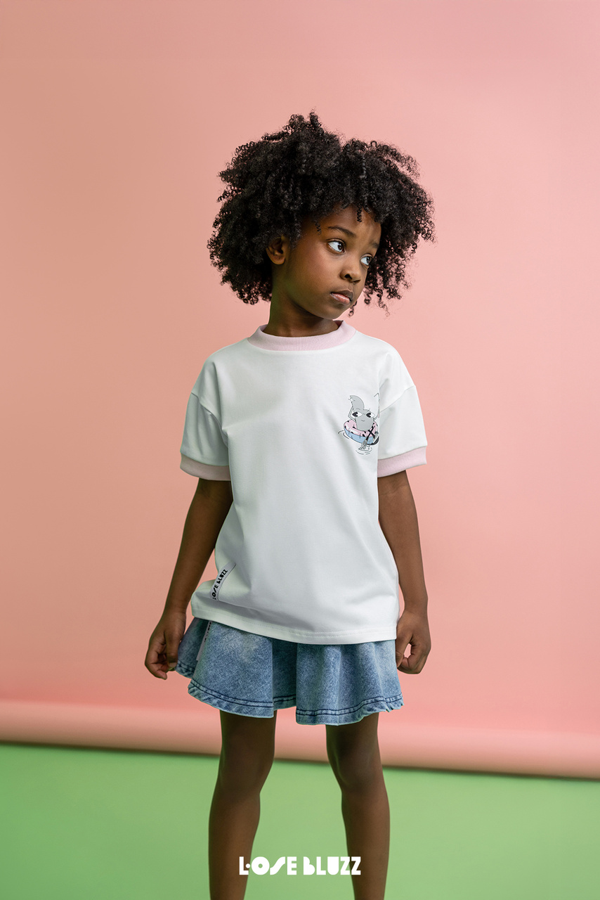 T-shirt dla Dziewczynki Hello Summer Śmietankowy Loose Bluzz