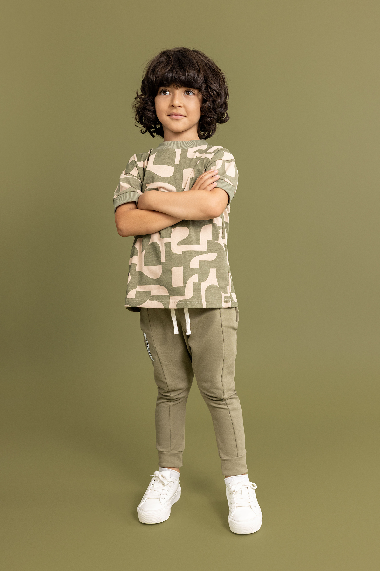 T-Shirt Unisex Wzorzysty Khaki Loose Bluzz